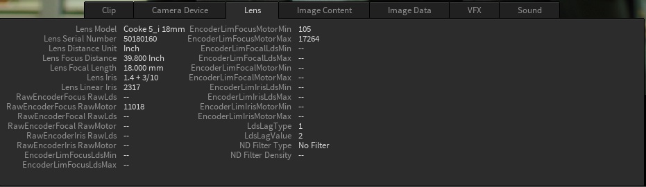 With SUP 8.1, an ALEXA XT can store a subset of lens data (focus distance, iris settings, serial number) with each frame. (When at speeds other than 23.976 to 30 fps, you may get an offset of several frames.