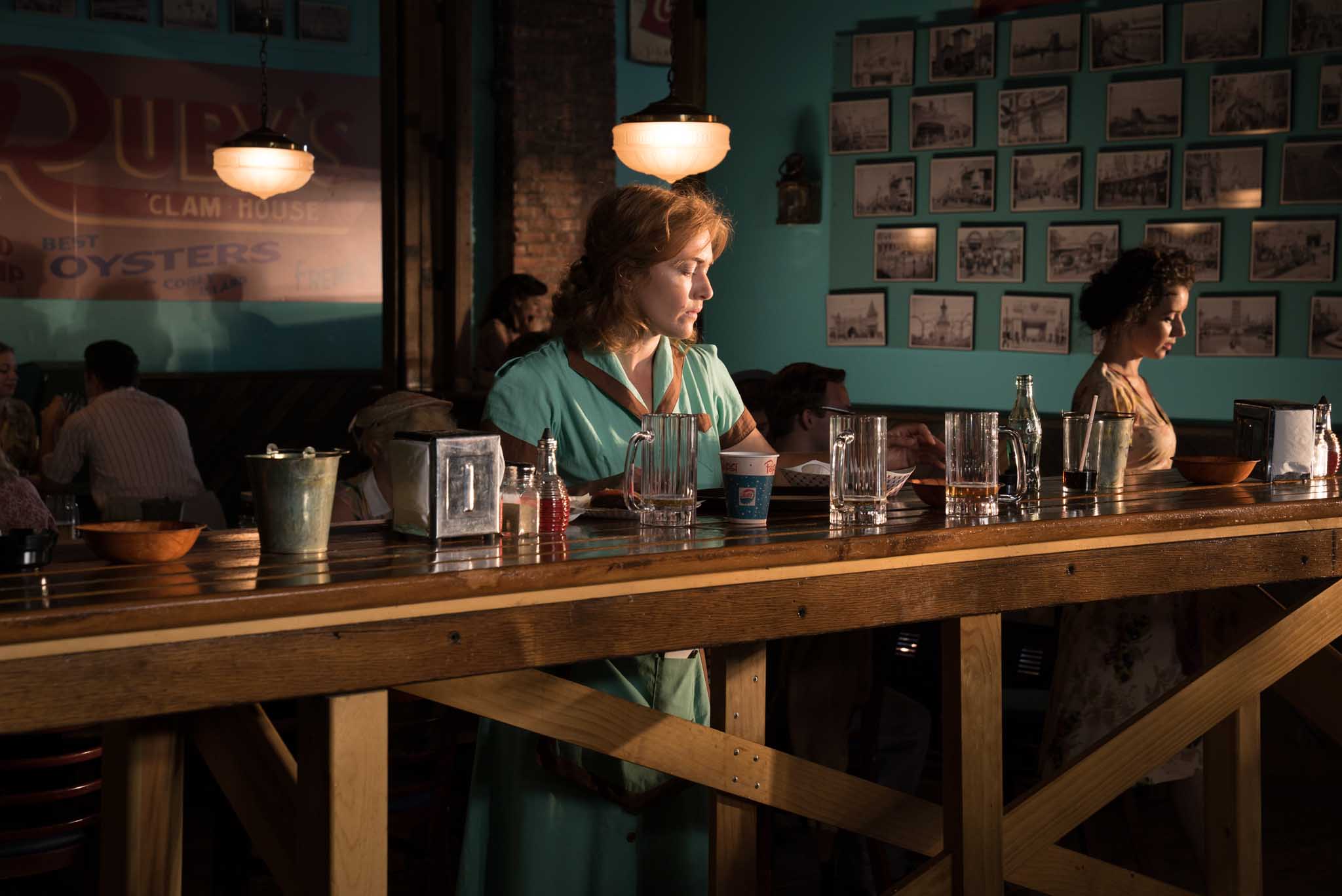 When I visited Coney Island the first time, I was so happy to discover a world that I didn’t know. There was an amusement park right next to the ocean where the characters lived. I found it incredible to go from the concept of the façade to the beautiful, colorful fantasy world of the amusement park, Coney Island, next to the beach and the ocean. But when we go inside the characters’ apartment, we discover the drab, normal relationships that can become dramatic. I love that kind of idea. I presented to Woody a concept for the visuals that was connected with the physiology of color. So, the two main characters, Ginny and Caroline, were practically fighting with each other to have a relationship with Mickey, the central person who was the lifeguard and also the narrator.