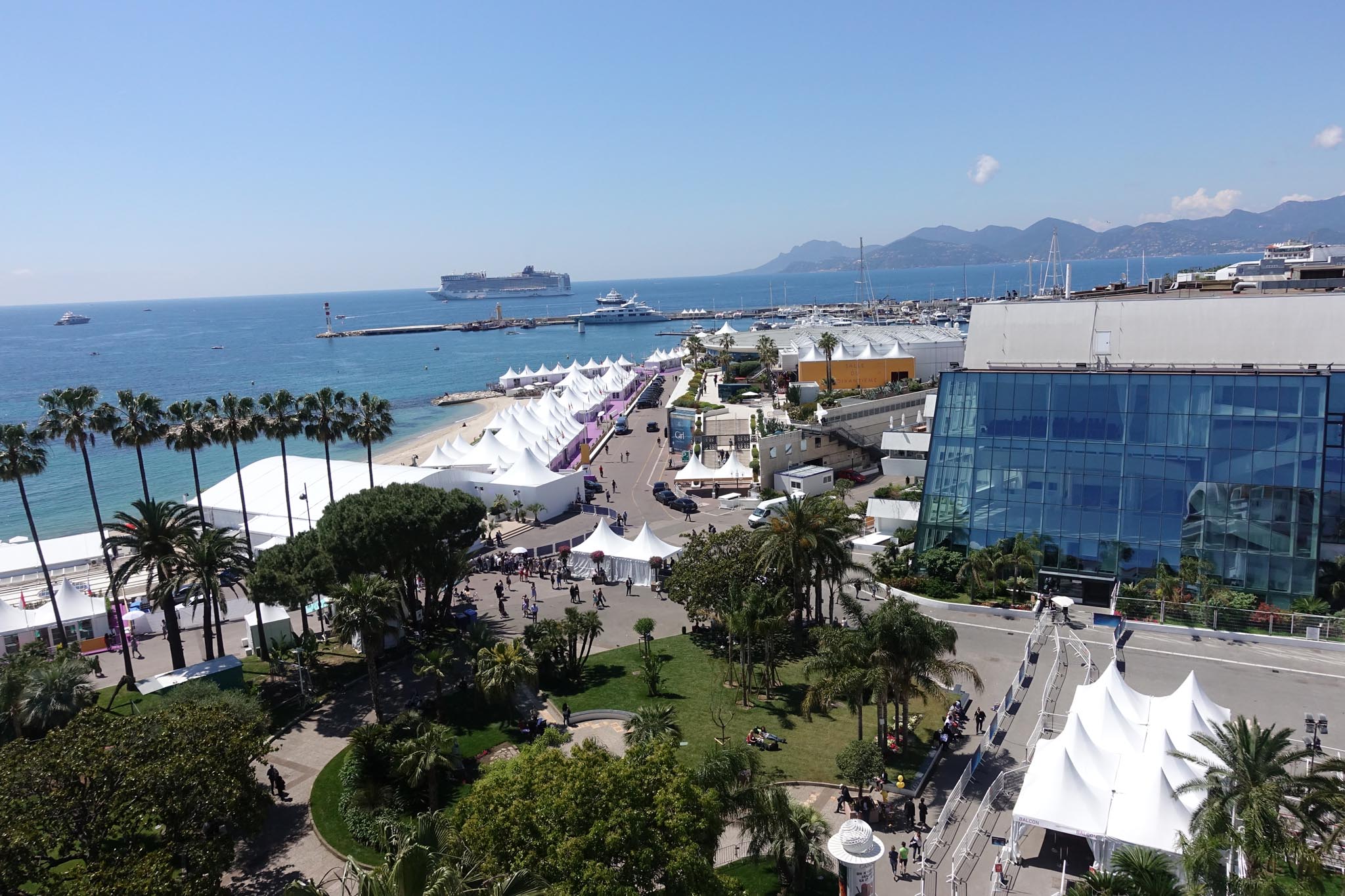 - The Croisette, beach, and 90,000 cubic feet of imported sand
