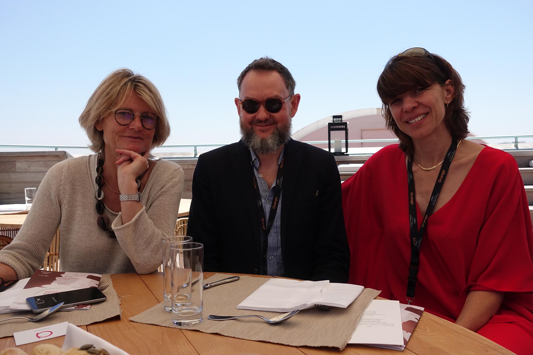 - Franz Kraus, Emmanuel Sprauel, Dominique Rouchon at pre-award reception on the roof terrace