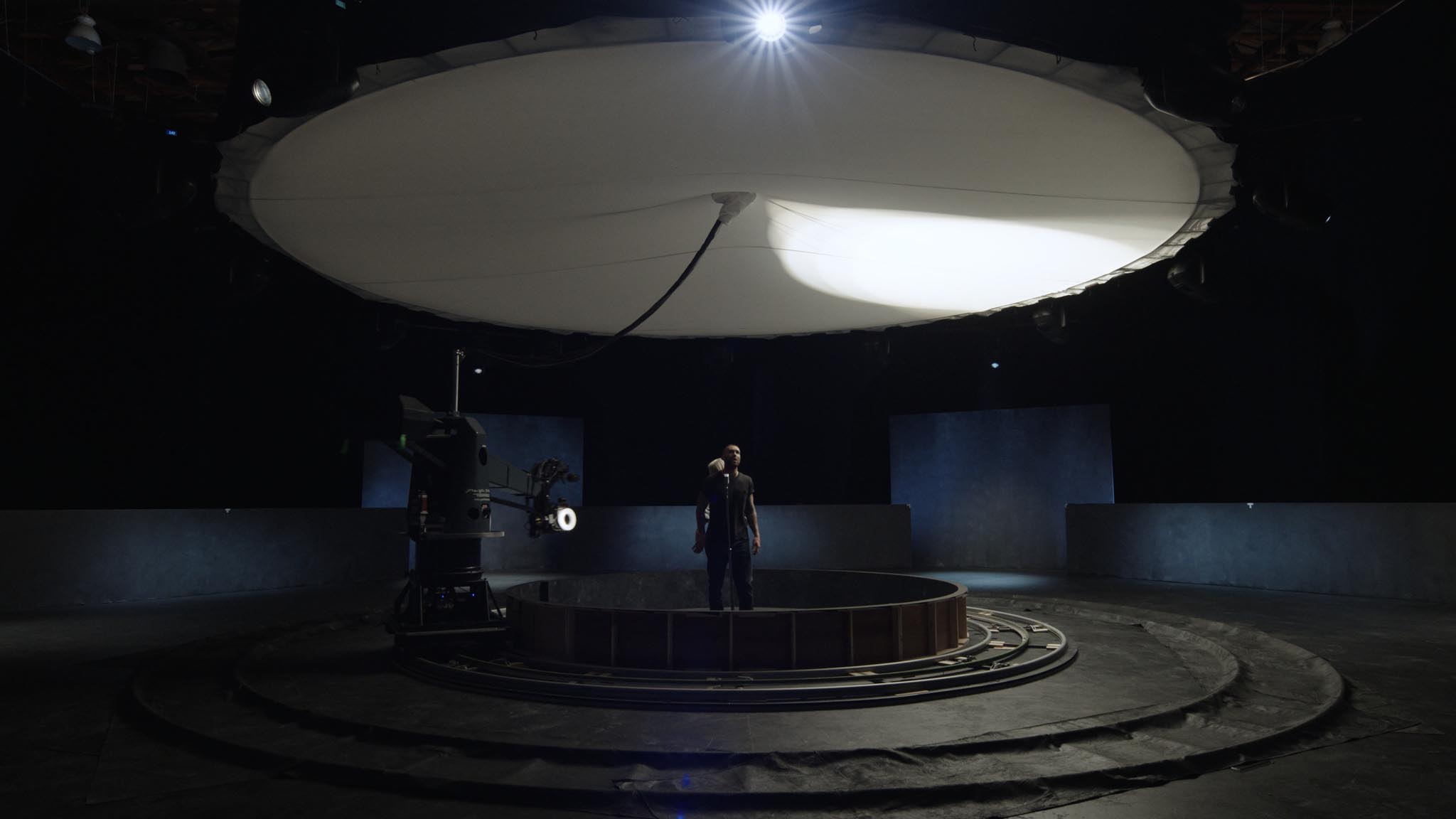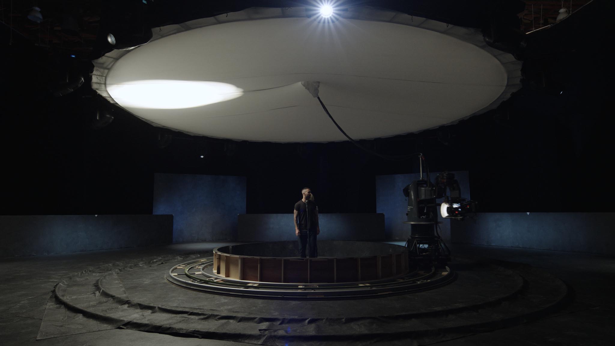 The lights were rigged on top and coming from overhead through the muslin. I wasn’t bouncing. The key light would sometimes go counter to the MoCo move at times. At other times, very briefly, it would open up to 8 big circles that looked like a flower with 8 petals. And then the lights would concentrate into a sourcier back or front light. It worked in a kind of cool, slightly complicated way of doing things.
