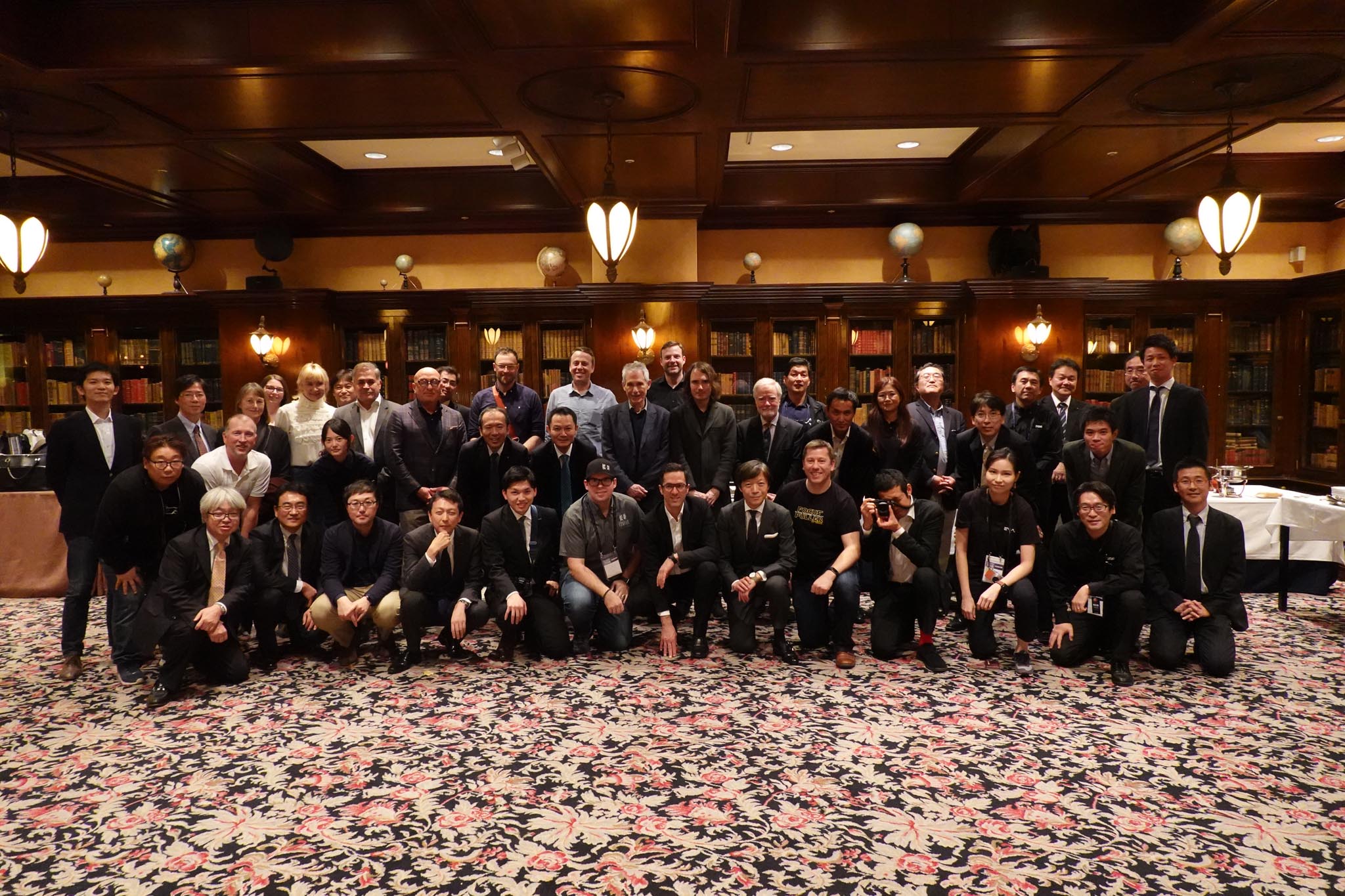 Front row, L-R: Arato Ogura (ZEISS), Yasuo Ueda (Sony), Sadanobu Ueda (Sony), Shinji Yamaki (SIGMA), Toshihisa Iida (Fujifilm), Takuya Noguchi (Fuijifilm), Matthew Duclos (Duclos Lenses), Jon Fauer (FDTimes), Kazuto Yamaki (Sigma), Stephen Chappell (cmotion), Osamu Tsukada (Leitz), Michael Schiehlen (ZEISS), Sae Nakatani (Panasonic), Yasuaki Mitsuwa (NAC), Isamu Senoo (Canon).