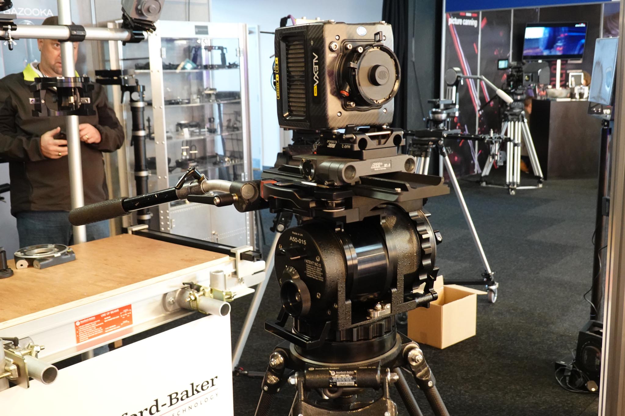Panasonic premiered their new mirrorless S1 full frame camera that is capable of 4K 10-bit 4:2:2. Ronford showed a modification of their Atlas head to accept an OConnor baseplate.