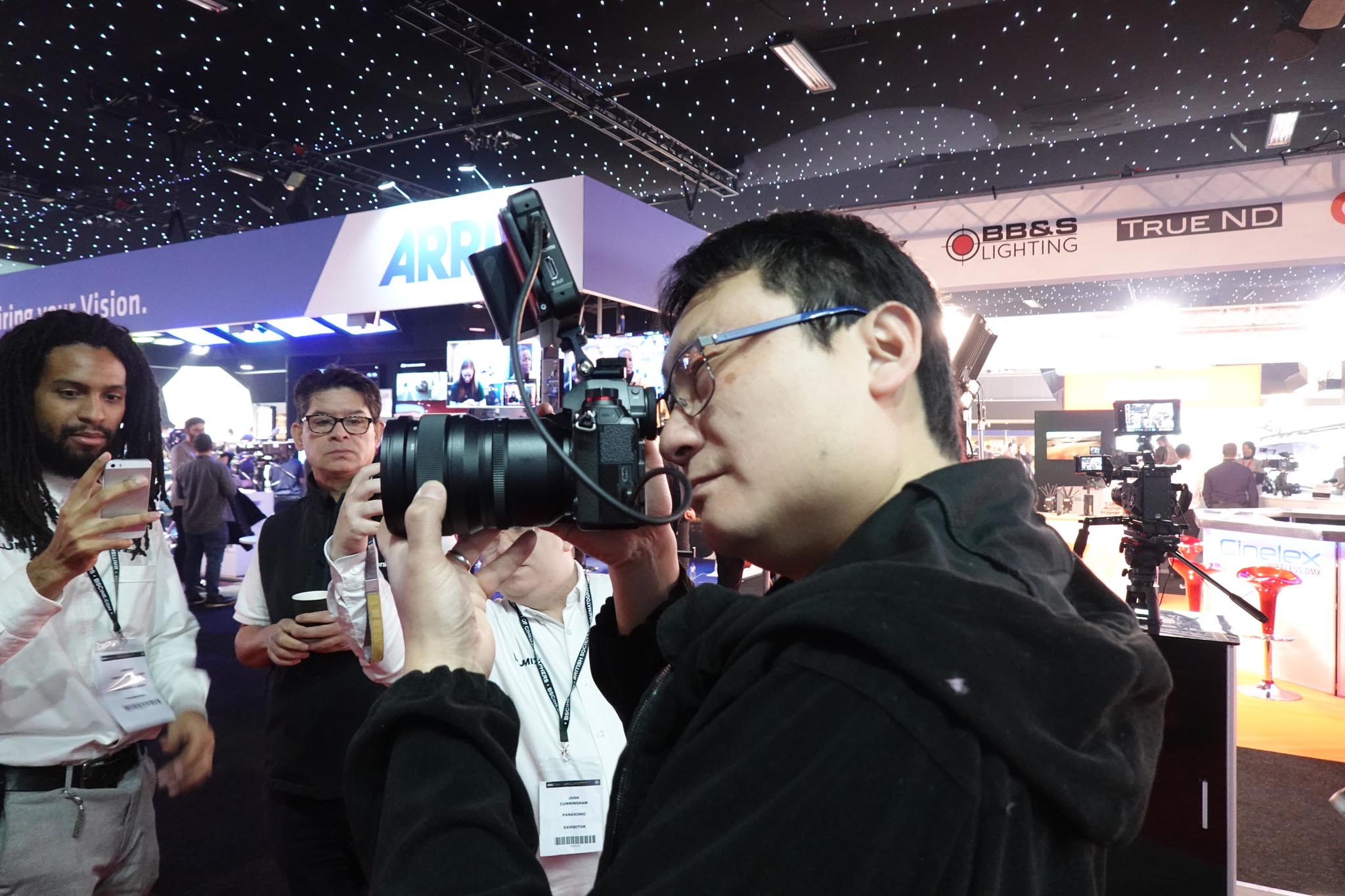 BSC Expo in London was the best ever. More than 5500 visitors gathered in the Battersea Park Evolution exposition space on Feb 1-2. If there was a theme, it was full frame and large format lenses. Panavision had 11 or 12 series of large format sphericals and anamorphics at their lens bar. Michael Cioni’s 4-screen display let you compare the same scene shot with 4 different lenses.