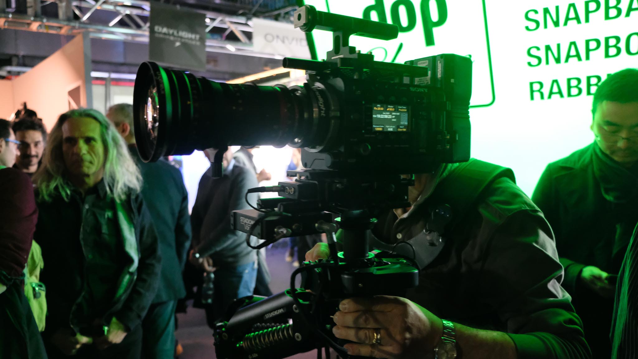 Several Italian Cinematographers, Steadicam operators and executives came to the Cinecittà Studios to visit: Nino Celeste (aic) Ivan Silvestrini, Paolo Carnera, Ivan Casalgrandi. Alex Brambilla, Valerio Azzali, Roberto Girometti (aic), Tani Canevari (aic) Marco Meloni, Dante Della Torre, Fabien Pisano (Sony Director of sales, Southern Europe) and Florence Quintin (Sony Europe Campaigns Manager).