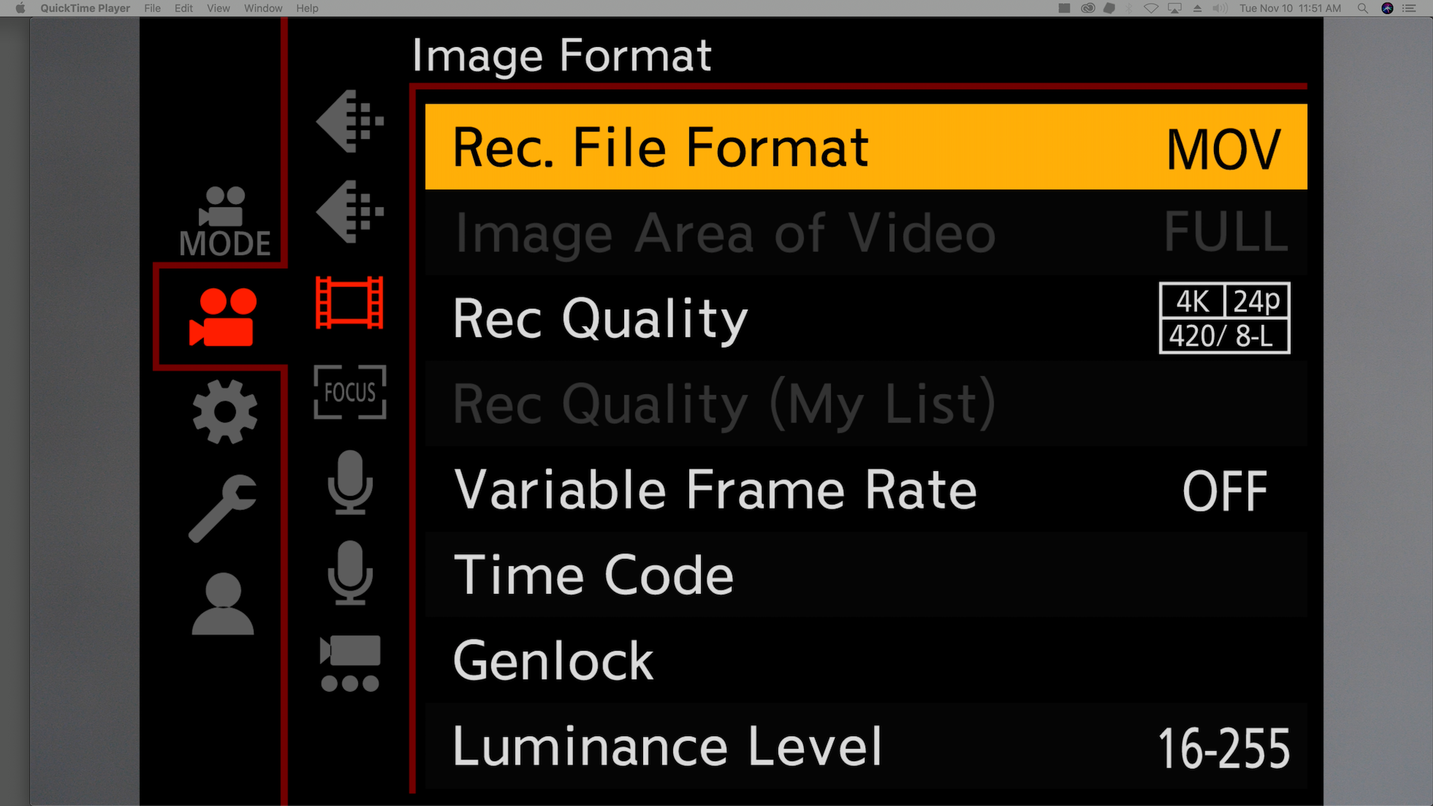 - .MOV Recording Format (or MP4)