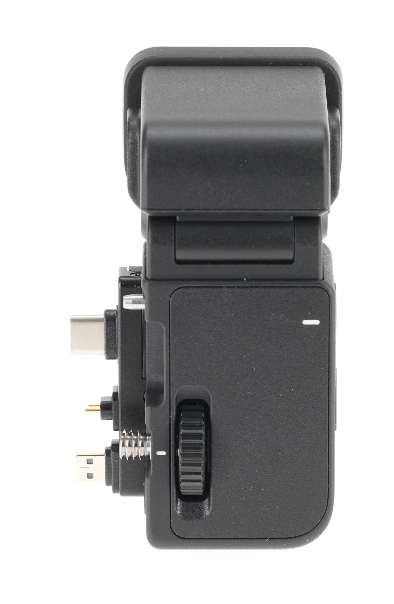 The modular, 0.5-inch, 3.68 million dot electronic finder attaches easily to the fp L camera’s left side. The adjustable diopter eyepiece swivels from horizontal all the the way to full vertical.
