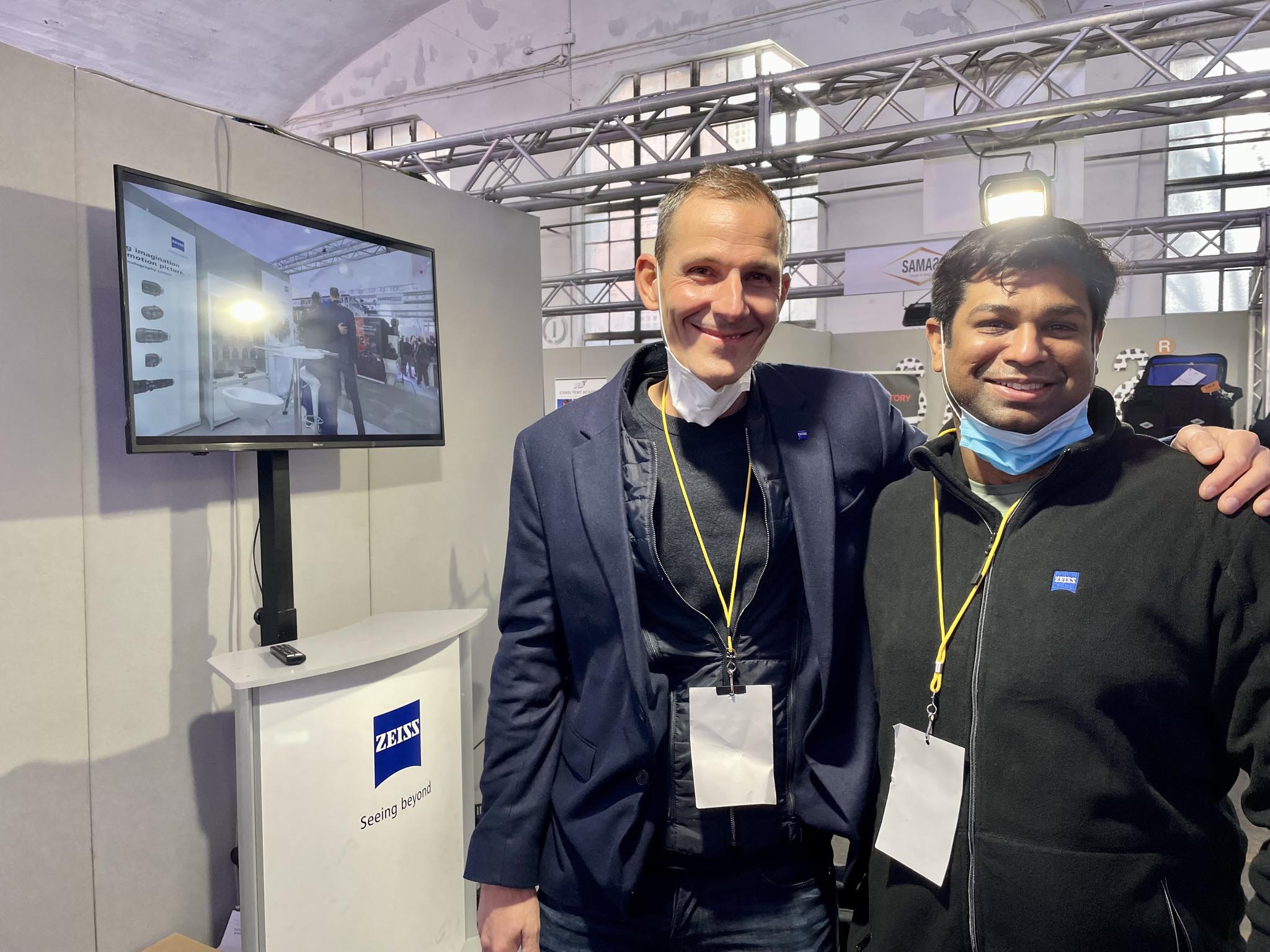 Followed by the eyes of an inquisitive Columba Livia (pigeon) perched on a scaffolding, we strolled around the exhibition hall. At ZEISS we received from Jacques Bouley (ZEISS Sales Manager Cinema Products, Europe) his comment on the Micro Salon: