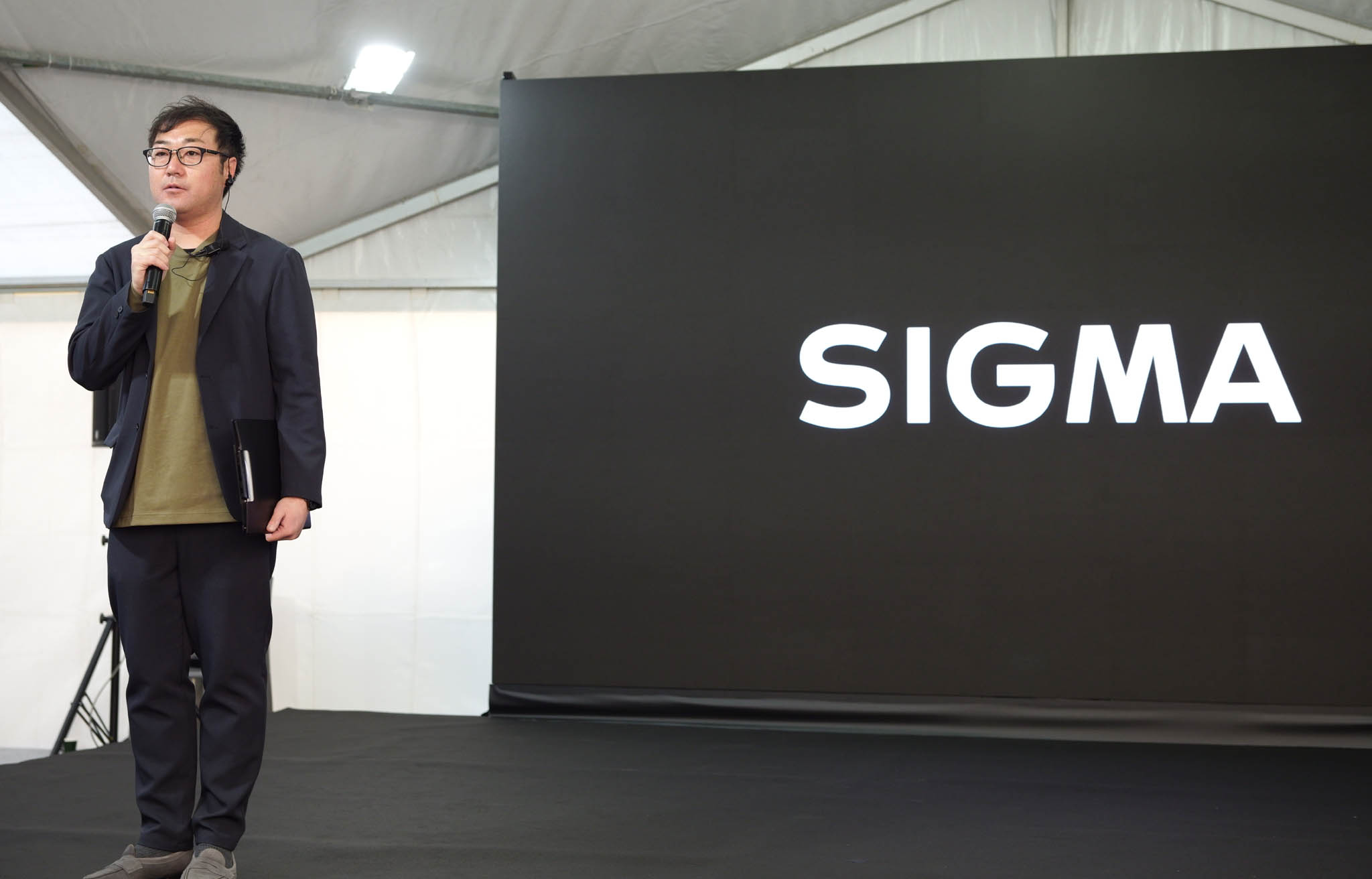 Kazuto Yamaki, CEO of SIGMA, takes the stage in a giant tent. After a brief company history, presentation of SIGMA’s new logo and branding, a new 16-300 (longest range F3.5-6.7 DC OS APS-C zoom) and 300-600 F5 DG OS (ightweight and with enough image stabilization to use handheld) and announcing that the DN designation is no more (as SIGMA plans to provide lenses only for mirrorless cameras)–the dramatic moment arrives. The SIGMA BF.
