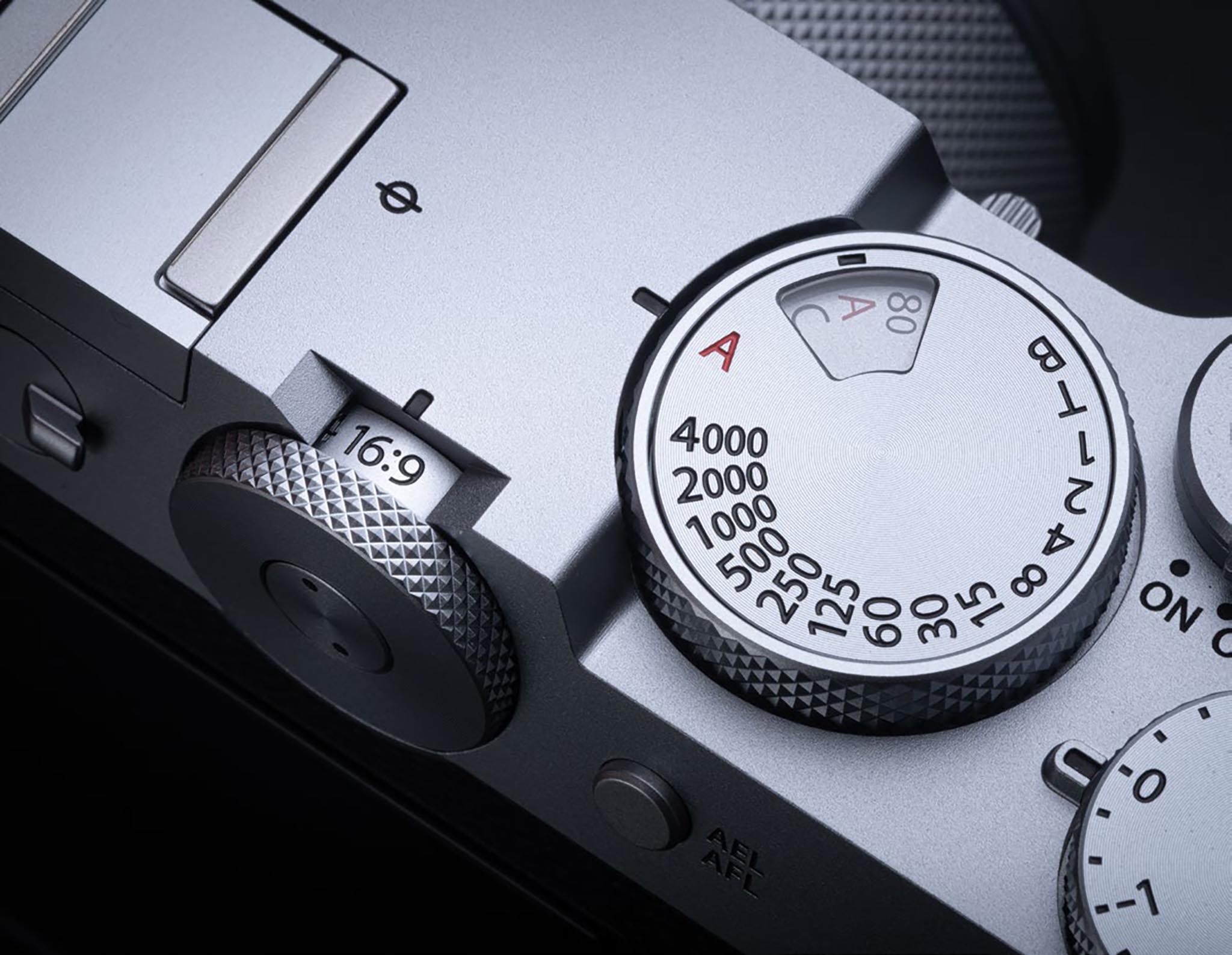The top plate of GFX100RF is machined from a single block of aluminum. And, in a nice first for Fujifilm cameras, there’s an Aspect Ratio Dial on the back of the camera. This lets you easily switch between various aspect ratios—5:4, 7:6, 1:1, 3:4, 17:6, 65:24, 16:9, 3:2 and 4:3. Another way of expressing these ratios — 1.25:1, 1.16:1, 1:1, 0.75:1, 2.83:1, 2.71:1, 1.78:1, 1.5:1 and 1.33:1.)