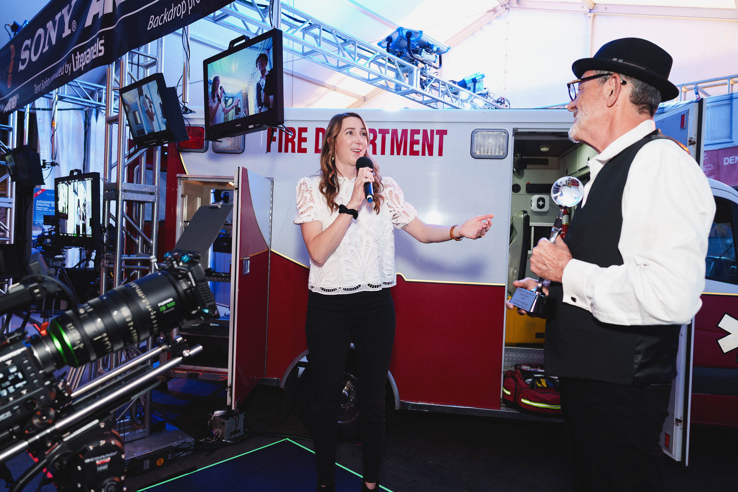 The guest of honor was Johanna Coelho, cinematographer on THE PITT. Naturally, this year’s event and expo had an ambulance/emergency room theme. Cocktails had names like IV Drip, Scalpel and Penicillin.