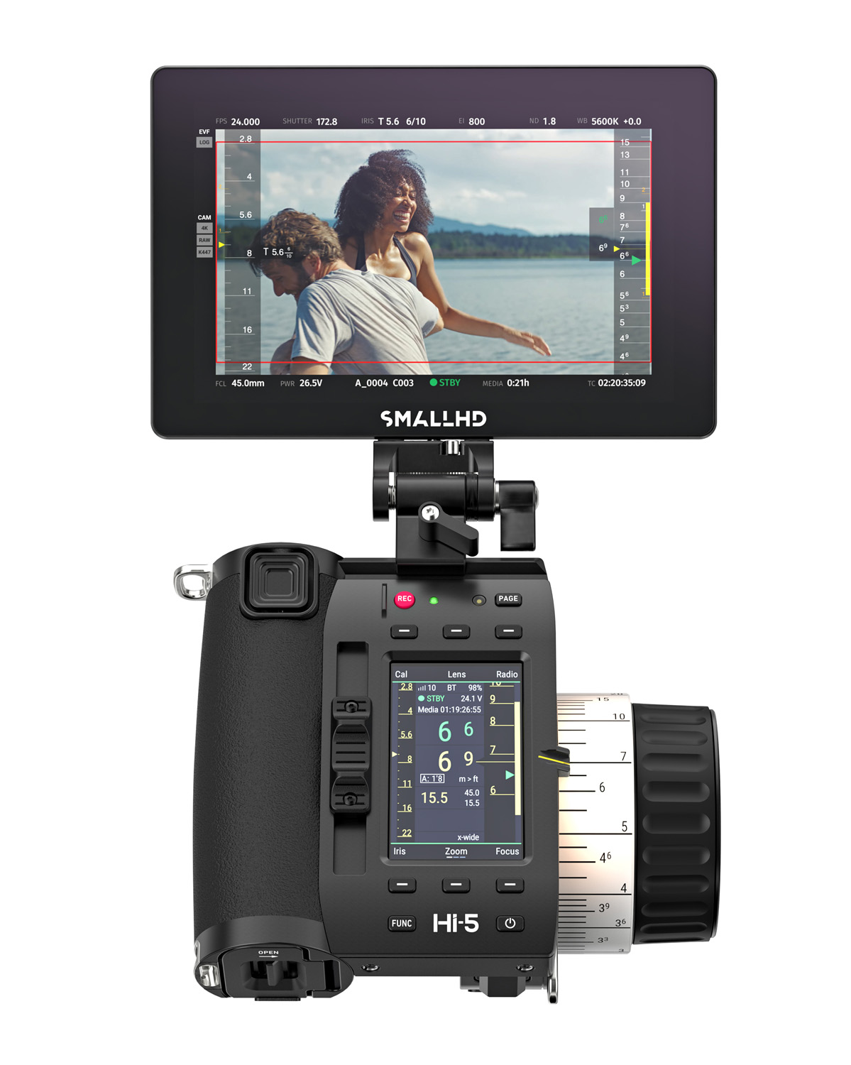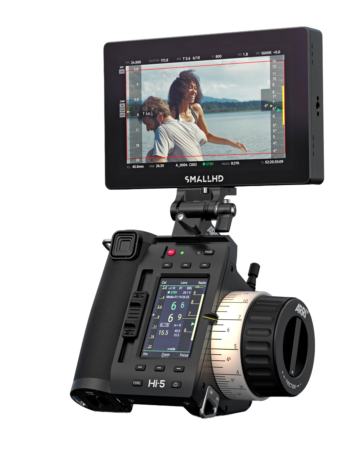 Matt Eidenbock, Product Manager for SmallHD, added: “Lens data is generated from the camera or lens motor and then transmitted to the Hi-5. The overlay reflects that data exactly. The Hi-5 sends lens data directly to the SmallHD monitor via a physical connection, either USB-C or (coming soon) the 4-pin serial port on the Hi-5. The ARRI Hi‑5 lens data overlays integrate with SmallHD’s Add-On API framework, combining a Hi‑5 user experience with SmallHD’s PageOS 6.”